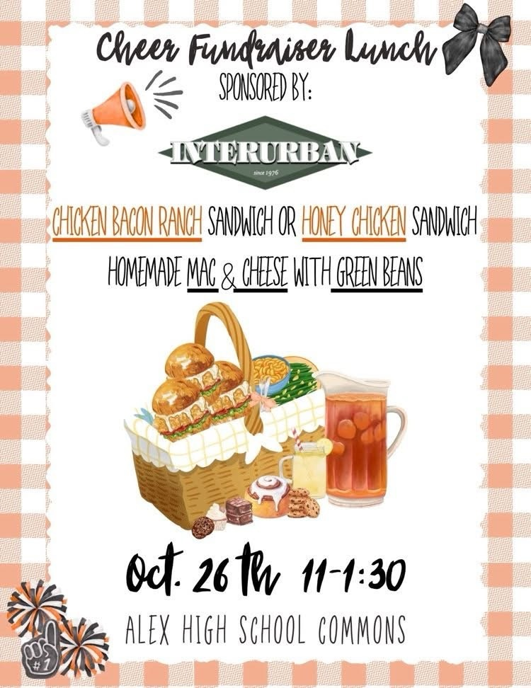 Join us this Sunday, October 26th, for a lunch sponsored by Interurban, supporting our Alex Cheerleaders!
